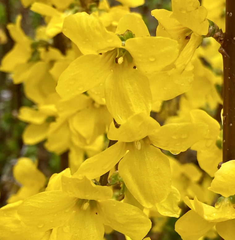 More problematic for me is the rest of the plant and its growing style. With the exception of some rigid stems bearing flowers, the rest of the new shoots are wild and wiry, issuing forth from the center of the plant and going absolutely everywhere without rhyme or reason. They will grow tall, to the point where they flop over and start rooting in the soil – a method of propagation that might work well in the wild, but absolutely ruins any hope of landscaping order. It goes against my very Virgo nature, and while I have learned to appreciate such wild wanderings from some plants, the forsythia doesn’t appeal to me in many other ways to change my view. As such, I admire these plants from a distance, just at this particular time of the year, and move on to warmer days as quickly as possible.