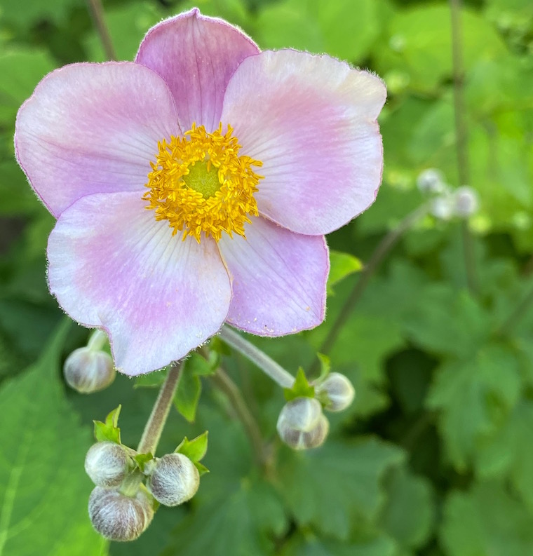 Certain plants, when they bloom, bring about a sense of melancholy, no matter how pretty or innocent they may otherwise be. That’s the feeling I get whenever the Japanese anemone opens in mid-to-late August. It’s a tell-tale signifier of the fall to come, an incontrovertible fact of the quick passage of summer, hastened day by day from this point forward. Like the goldenrod that must be beginning its graceful nodding beside highways and country roads, it’s a symbol of the waning summer, and always a rather sad one at that.