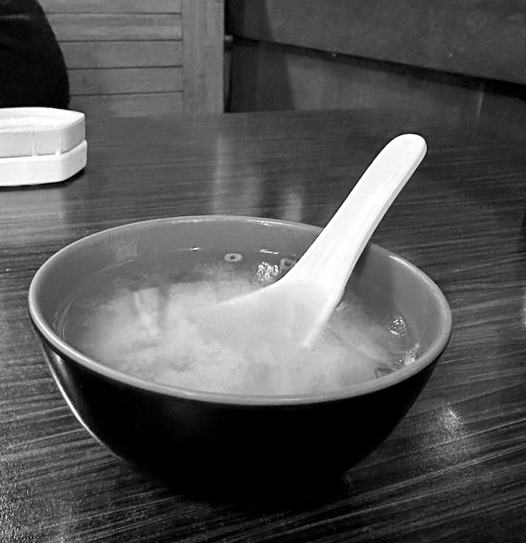 The occasional cube of tofu, the swirling rings of scallions, and the almost-black jagged clouds of seaweed floating through the broth comprise a bowl that perfectly represents a minimalist stroke of culinary economy – where less is more and the notion of absence as elegance imparts impressive and beautiful restraint.