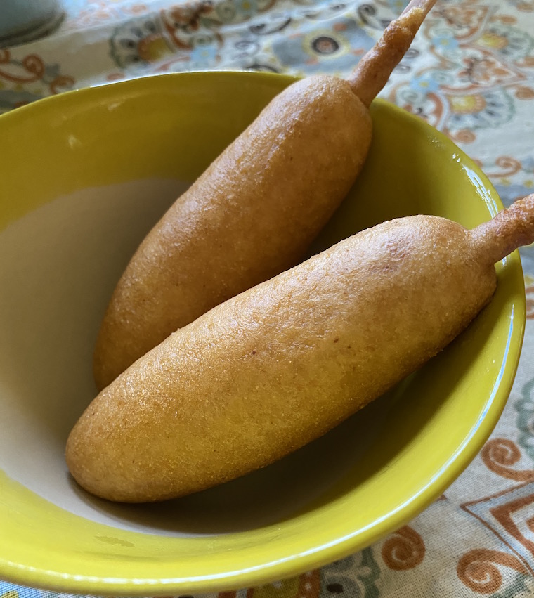 Every 12 or 14 years or so, I get a hankering for a corn dog, and so I have one. I don’t give much thought to what constitutes a corn dog, which is probably why I can stomach them. When you think about it, they’re rather bizarre. Best not to dwell. I’m good for another dozen years.