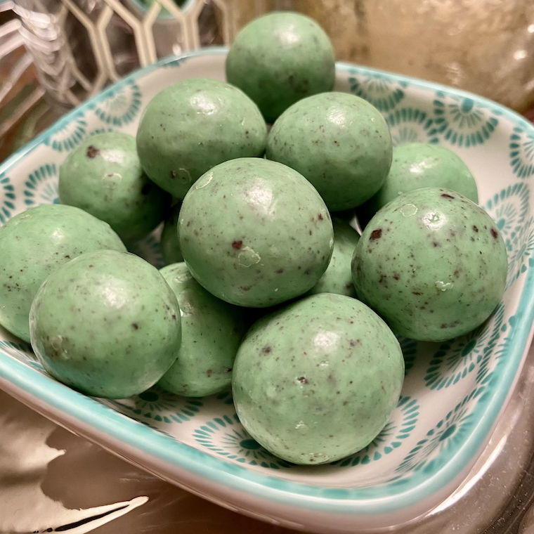 From the shriveled to the delectable, this blog day is all about the balls. Here we have a thoughtful and much-appreciated gift from our friends Lorie and Cal, who brought back these mint malt balls from our favorite candy shop in Ogunquit, Maine. It was an unexpected delight on a day when it was badly-needed, and it instantly brought Andy and I back to happy memories of that Beautiful Place By the Sea