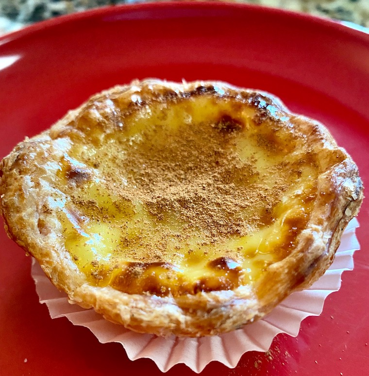 These Portuguese egg tarts are one of the most delicious things our wayward world has to offer. Our friend Ali brings them whenever she visits, which makes her visits even more special than they already are – lending a festive aspect of the extraordinary to those fabulous weekends. She just accompanied JoAnn for a get-away here and brought a box, and we’ve been enjoying them every day since. She advised to sprinkle some cinnamon on them, then heat them for a bit, and that makes all the difference. A little but of rustic decadence that is good for breakfast, ideal for a midday snack, and perfect for a dessert after dinner – in other words, we eat these at all times of the day until we’ve gone through an entire box. Thank you, Ali!