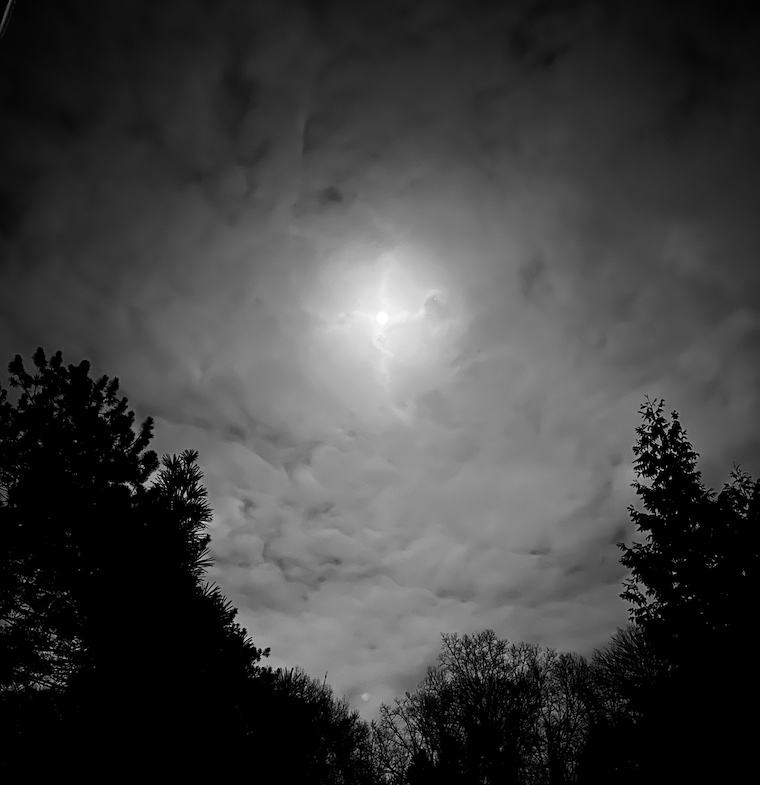 The full Wolf Moon almost stopped me in my tracks, quite literally as I slowed my car to a stop – so stunning was its form and color against a gorgeously lavender-blue sky. I’d just turned onto the street that led to my street when it appeared directly before me, hovering right above a house on the horizon – impossibly huge when plopped into such worldly perspective. As a child, I’d have believed in the possibility of driving toward the moon, leaping over houses and trees, climbing the most gradual and languid incline as the car made its magical nighttime journey all the way to the glowing orb in the sky.