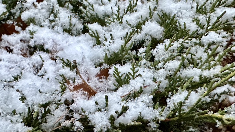 When the wind has stilled, and the leaf-blowing neighbors have stopped, it’s possible to hear the snow fall. The tiniest shards of ice ping like the little crystals they are, part drum and part bell, and all of it the most subtle and magical music you could ask to hear. This is the way we open the holiday season here – with a gentle image of an early snowfall and a simple seasonal song for anyone looking for Christmas, or some sort of Christmas spirit.