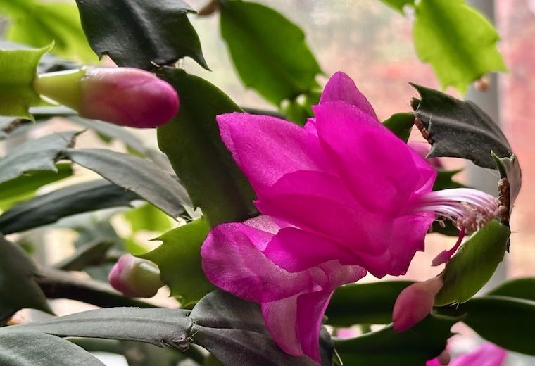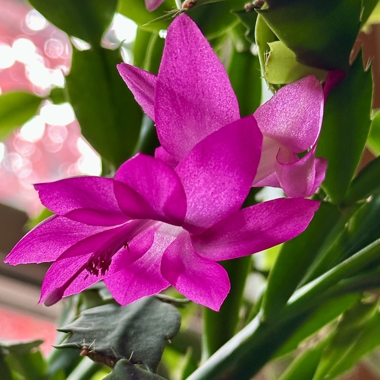 Our wonky and often-wayward Christmas/Thanksgiving/Easter/4th-of-July cactus, which always and never lives up to its common name (it’s technically an epiphyte, and rarely hits its bloom stride on any of its designated holidays), announces this year’s commencement of the high holiday season! That’s worthy of an exclamation point, no? Who else is ready to start the holiday slide? Hop on – it’s a long way down, and it begins with a day of gratitude, a very good place to start.