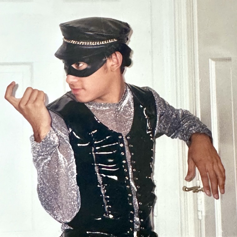 That first year, however, I played it relatively safe. Earlier in the summer, channeling Madonna’s ‘Human Nature’ video, I’d done a basement photo shoot in shiny latex and a leather collar, a dog chain pulled taut (TAUT!) and a pair of handcuffs (an accessory from a Limited Edition of Madonna’s ‘Erotica’ album) doubling as a belt. This seemed a fitting first Christmas card, because nothing says Christmas like a touch of bondage and S&M.