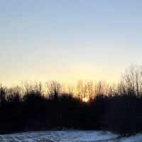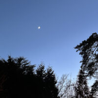 A crescent moon winks at the dawn of dusk, if you can make much sense of that. It doesn’t come across clearly in these amateurish photos I attempted to take, but the idea is there, and during the winter an idea sometimes has to be enough. The idea that something could be cradled in the curve of a crescent moon is merely that – an idea. There is no empty space there – it’s filled with moon. We just can’t see it. Somewhere there’s an allegory to an iceberg in this, but it’s cold to delve into, and I’m not interested in following that path right now.