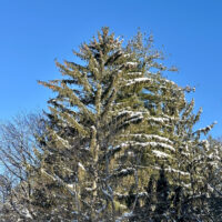 Whenever I get bogged by the mundane details of life and the annoying minutiae of a troublesome moment, I move to any of the windows on the back-side of our home and look up to this evergreen in the distance. It must stand at around 100 feet tall, and be around 75 years old, give or take a couple of decades (the latter is most definitely a rough guesstimate). Its size and age immediately put things into perspective, and as I examine its snow-laden boughs I think of all the life it has sustained over its existence. You’ve probably seen this view before, as I often post it whenever there’s a need to be grounded.