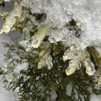 As antsy as Andy and I are for the weather to soften and the sun to appear in full force, I’m taking a moment to appreciate the beauty of a winter morning. The wind has been kind enough to leave some of the snow on the pine boughs, mirroring the scattering of clouds in the sky. Considering how beauty works so wondrously makes me believe the world is more than a bunch of random acts and images. There is purpose here, and design, and meaning. It speaks to all the senses, even the metallic taste in the air signaling snow on the move.