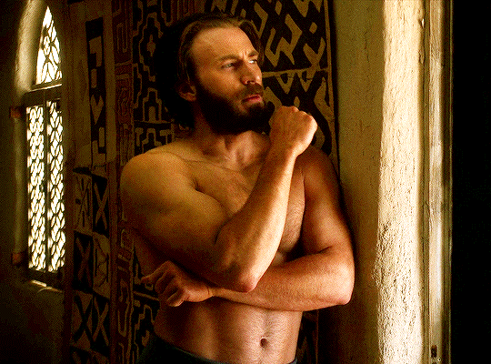 PS – For more shirtless shenanigans of the Chris Evans guy seen here (including a jockstrap shot or two), try this link.